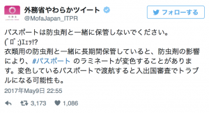 ところが、「あるもの」と一緒に保管してしまうとパスポートが変色し、出入国の際にトラブルになってしまう恐れがあると、外務省IT広報室の公式Twitterが注意を呼びかけています。